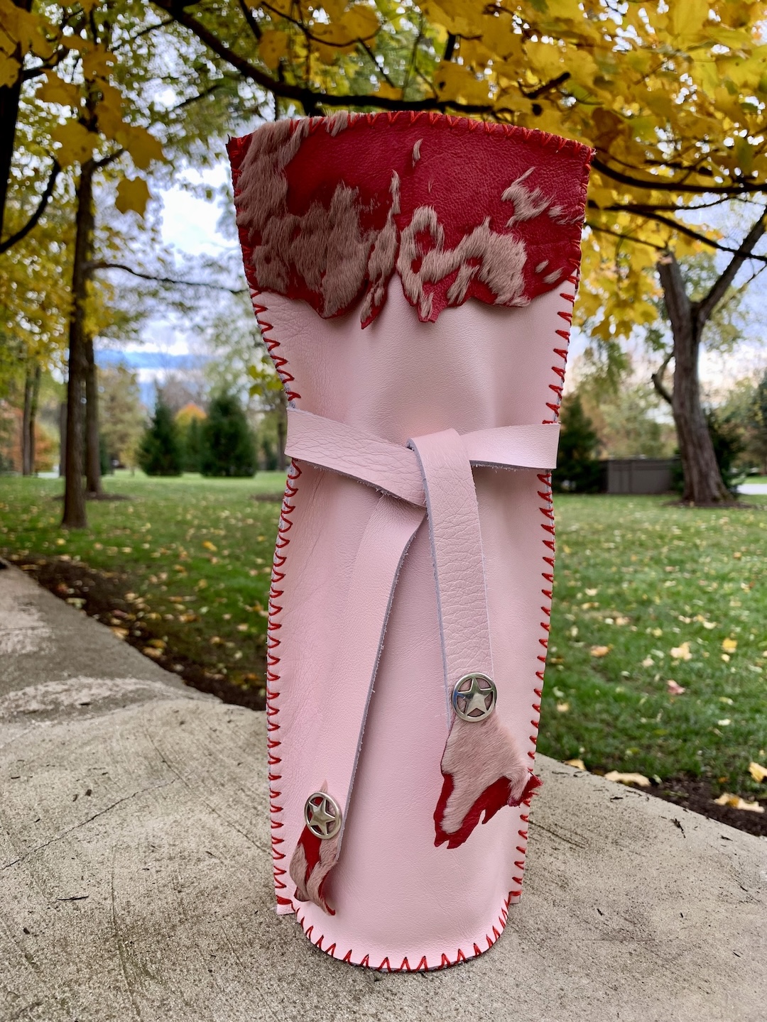 Bridger Leather Offers many things for the Home... among them are these bottle bags. The bags are designed to hold any sized wine, bourbon or whiskey bottles.